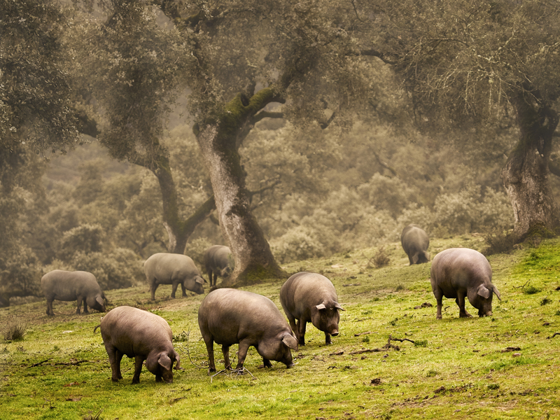 Bezüglich der Aufzucht und Ernährung der Schweine ist die Lage schon ein wenig komplizierter: Hier unterscheidet man zwischen den beiden Klassifikationen „de bellota“ sowie „de cebo“, wobei sich letztere in zwei Ausprägungen aufteilt.